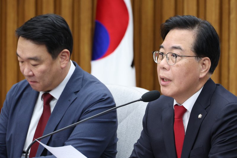 (서울=뉴스1) 박소은 손승환 기자 = 송언석 국민의힘 원내대표는 13일 더불어민주당에서 불거지고 있는 각종 논란을 겨냥해 "강선우·김병기 의원처럼 뇌물 공천하지 말고, 최민희 의원처럼 축의금을 가장한 뇌물을 받지 말고, 장경태 의원처럼 성추행하지 말고, 이혜훈 기획예산처 장관 후보자처럼 갑질·폭언하지 말고, 이춘식 의원처럼 주식 차명거래하지 말자"고 강조했다.