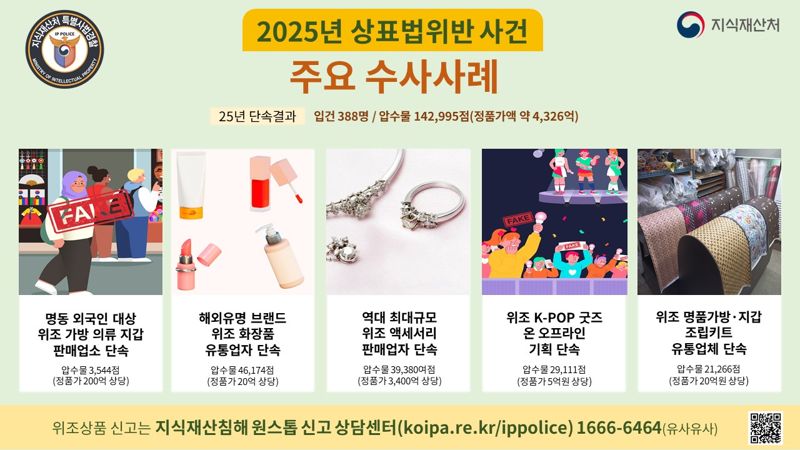 정품가액 4326억원 어치 위조상품 14만3000여점도 압수
