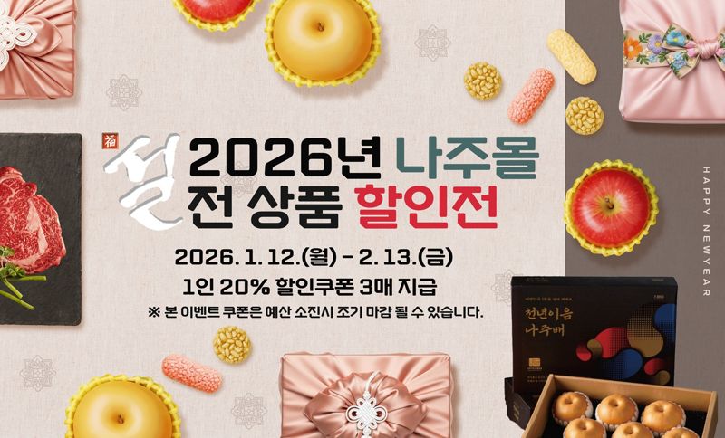 나주시 관계자는 "설 명절을 맞아 시민과 소비자들이 부담 없이 우수한 나주 농특산물을 만나볼 수 있도록 할인 폭과 혜택을 강화했다"면서 "'2026 나주 방문의 해'를 계기로 앞으로도 다양한 기획전을 통해 나주몰 이용 만족도를 높여가겠다"라고 말했다.