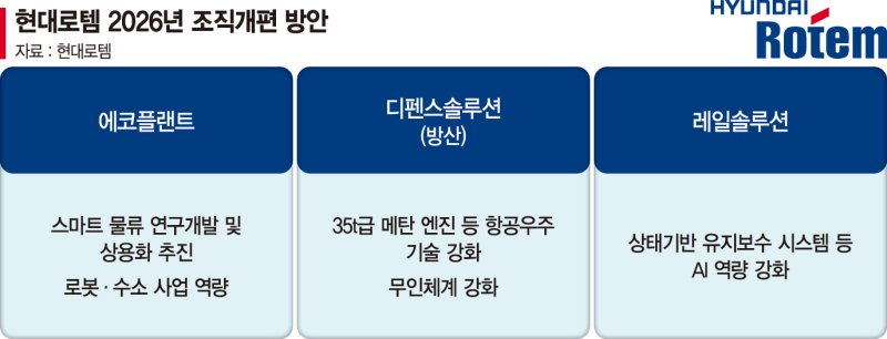 이용배 현대로템 대표이사 사장은 올해 신년사를 통해 "수소, 무인화·AI, 항공·우주 등 미래 산업 경쟁구도가 빠르게 재편되고 있다. 기술 주권을 확보하고 이를 신속하게 사업화로 연결하는 것이 반드시 필요하다"며 "자율주행 및 피지컬(Physical) AI 핵심 기술을 사업모델 전반으로 확대 적용하겠다"고 말했다. 이를 위해 현대로템은 신사업을 강화하고 미래 피지컬 AI 시대에 대응하기 위한 조직개편을 단행했다.