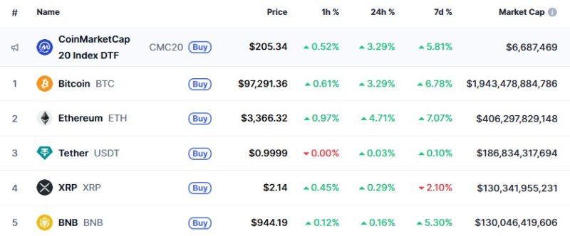 15일 오전 5시 20분 현재 글로벌 코인 시황 중계 사이트 코인마켓캡에서 비트코인은 24시간 전보다 3.29% 상승한 9만7291달러를 기록하고 있다. 약 한 시간 전 비트코인은 9만7750달러까지 상승했었다.