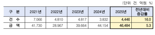 [파이낸셜뉴스] 한국예탁결제원은 2025년 예탁결제원을 통한 주식관련사채의 행사건수가 4446건으로 전년 대비 16% 증가했다고 15일 밝혔다. 행사금액은 4조6484억원으로 전년 대비 5.3% 증가한 것으로 집계됐다.