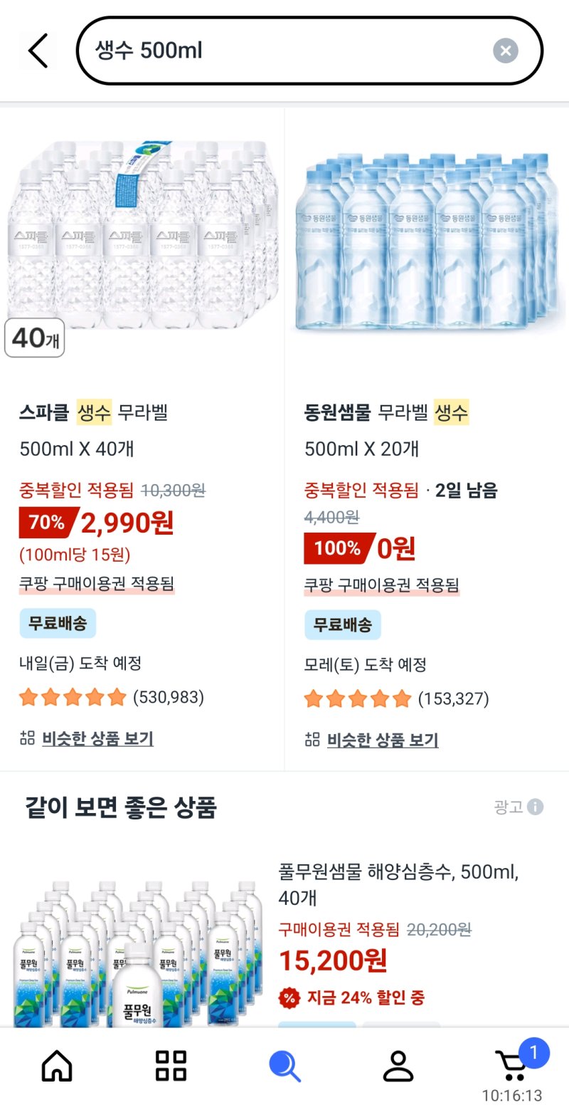 휴지와 세제, 물티슈, 생수, 라면 등 생필품은 구매이용권을 자동 적용할 경우 '0원'부터 수백원대에 구매 가능하다는 인증 글도 게시됐다.