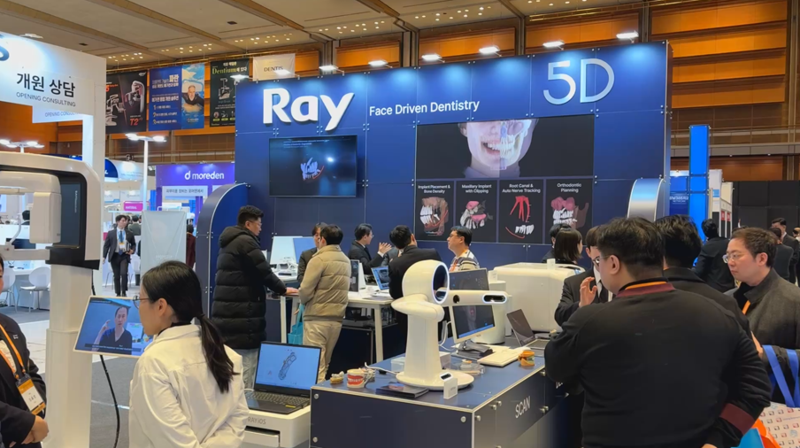레이는 이번 박람회에서 대규모 업그레이드를 단행한 구강스캐너 RAYios2, 5D 솔루션을 전면에 내세웠다. 특히 RAYios2는 임플란트 시술에 최적화된 'Sub Margin Finder' 신기술을 선보이며 호응을 얻었다.