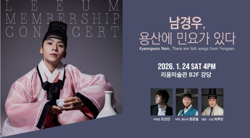 [파이낸셜뉴스] 리움미술관에서 2026년 새해를 맞아 전통 민요의 정수를 만나는 멤버십 음악회가 열린다.