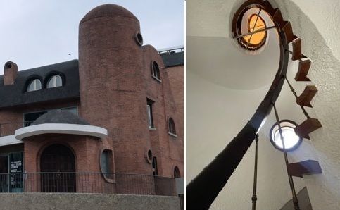 김중업건축박물관 김다해 학예연구사는 "1980년대 김중업의 건축물엔 60, 70년대 없었던 스테인드글라스가 있다. 그리고 원"이라며 "계단은 중앙에 기둥이 박힌 듯 원을 그리며 올라가고 창문은 원형이거나 아치형이다. 벽돌 건물도 특징 중 하나"고 설명했다.