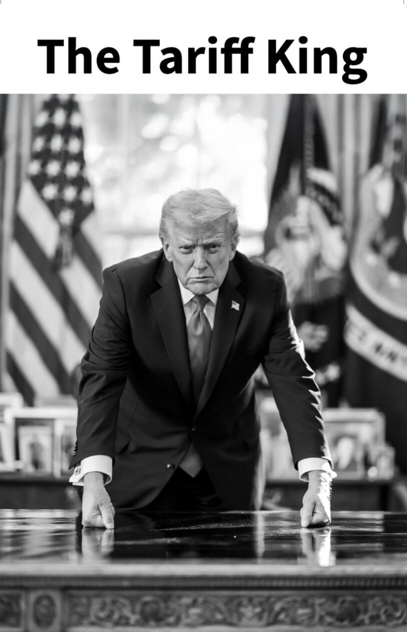 트럼프 대통령은 이날 자신의 소셜미디어 트루스소셜에 두 주먹으로 책상을 짚고 앞을 바라보는 흑백 사진 2장을 게재했다. 사진에는 다른 설명 없이 각각 '관세의 왕', '미스터 관세'라는 문구가 적혀 있다.