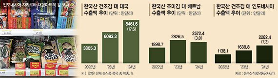 【파이낸셜뉴스 하노이(베트남)·자카르타(인도네시아)=김준석 특파원·아울리아 마울리다 함다니 통신원】 한국산 김이 동남아 입맛을 완전히 사로잡고 있다.