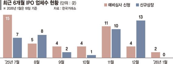 18일 한국거래소에 따르면 지난 1일부터 이날까지 신규상장을 위해 예비심사를 신청한 기업(코넥스, 스팩, 리츠 제외)은 2곳이다. 아직 이달 중순에 접어들었지만, 지난해 같은 달 5곳이 신청한 것과 비교하면 적은 수준이다.