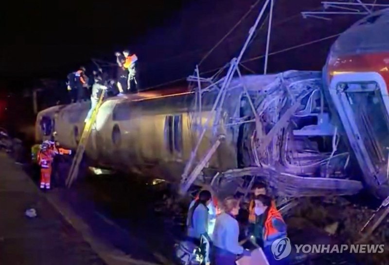 (서울=연합뉴스) 차대운 기자 = 스페인에서 약 400명의 승객을 태운 두 고속열차가 정면으로 충돌해 최소 21명이 숨지고 100명이 넘는 사람들이 부상하는 대형 사고가 발생했다.