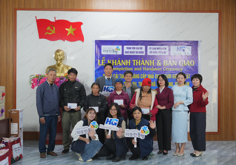 하이증성 빈장현에서 진행된 공간복지 지원 사업 준공식에는 지원 대상 장애인 가족과 인근 주민들을 비롯해 이민우 한미글로벌 베트남 법인장, 하티란 아인 지역 인민위원회 부위원장, 하이증성 직업 교육 센터 관계자 등이 참석했다.