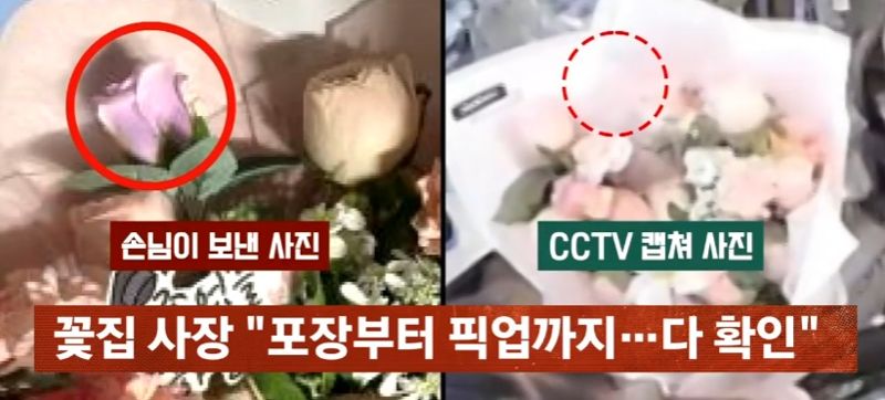 이에 A씨는 즉시 매장 CCTV를 확인했고, 꽃다발 제작은 물론 픽업 장소에 놔둘 때까지 그 어디에서도 '보라색 꽃'도 '조화'도 보이지 않았다.