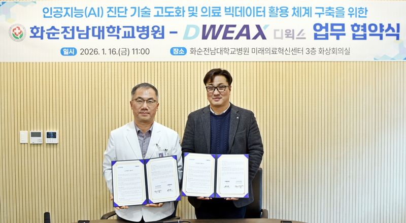 안준형 디윅스 대표이사는 “이번 협약은 의료 현장에서 생성되는 방대한 데이터를 기반으로 AI 진단 기술을 한 단계 끌어올리는 출발점이다”며 “화순전남대병원과의 협력을 통해 임상 적용이 가능한 디지털 헬스케어 솔루션을 지속적으로 개발해 나가겠다”고 전했다.