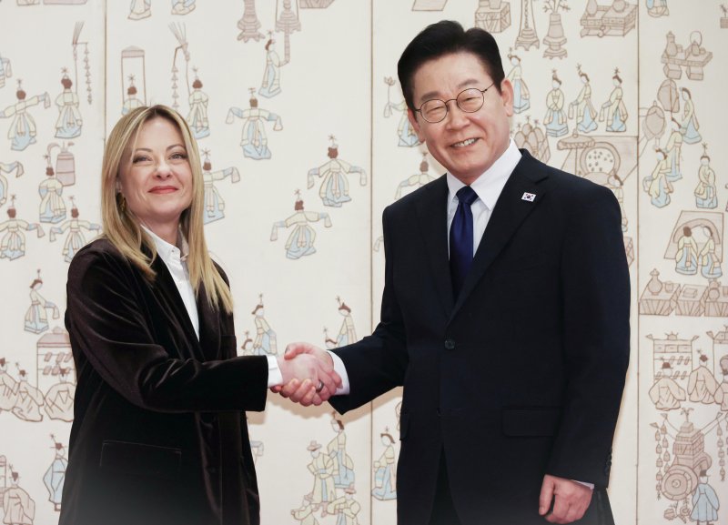 [파이낸셜뉴스] 이재명 대통령은 한국을 찾은 조르자 멜로니 이탈리아 총리와 19일 청와대에서 정상회담을 가졌다. 이 대통령은 "이탈리아 총리께서 한국에 오신 것은 19년 만"이라고 언급하며 멜로니 총리를 반갑게 맞이했다. 이 대통령은 "과학 강국 이탈리아의 전통적인 강점, 기술 강국인 대한민국의 핵심 DNA가 힘을 모으면 양국이 큰 시너지를 창출할 수 있을 것"이라고 말했다. 멜로니 총리도 "한국과 이탈리아는 지리적으로 굉장히 멀지만 유사성을 공유하는 국가"라며 공급망 협력, 무역과 교역 확대 등을 언급했다. 또 멜로니 총리는 "제 딸이 K팝 팬이기도 하다"며 문화 부문에서의 협력도 모색하자고도 했다.