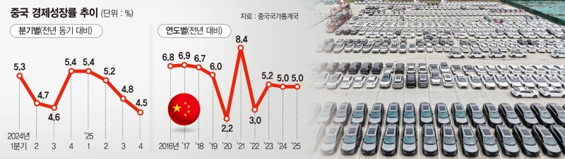 한편 지난해 중국 인구는 14억489만명으로 2024년 대비 339만명 줄어 4년 연속으로 감소했다. 지난해 출생인구는 792만명이었다. 지난해 중국의 도시 지역 평균 실업률은 5.2%로 전년 대비 0.1%p 상승했다.