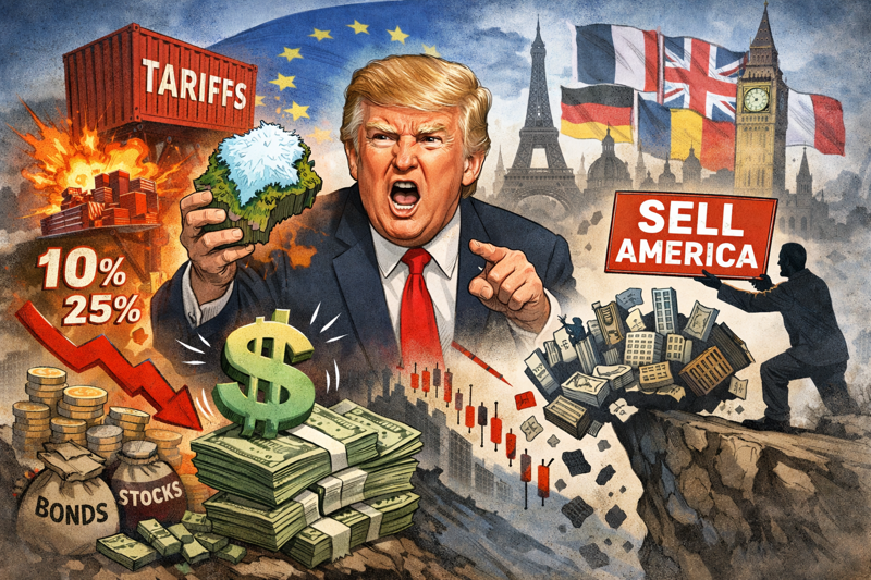 [파이낸셜뉴스] 도널드 트럼프 미국 대통령이 유럽 8개국을 상대로 이른바 '그린란드 관세' 부과를 경고하면서 글로벌 금융시장에서 '셀 아메리카(Sell America·미국 자산 매도)' 논쟁이 재부상하고 있다. 동맹국까지 관세 압박 대상으로 삼은 트럼프식 통상 전략이 달러·미국 자산에 대한 신뢰를 흔들 수 있다는 우려가 확산되는 분위기다.