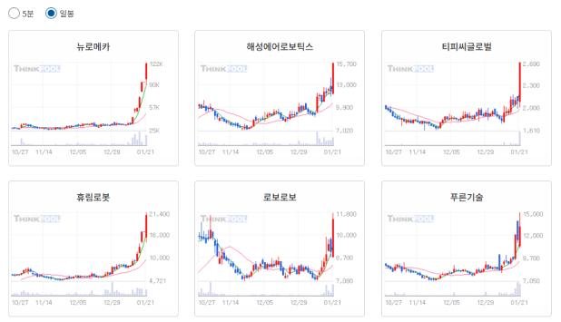 ※ [로봇] 이슈 관련 종목 : 해성에어로보틱스, 뉴로메카, 휴림로봇, 로보로보, 티피씨글로벌