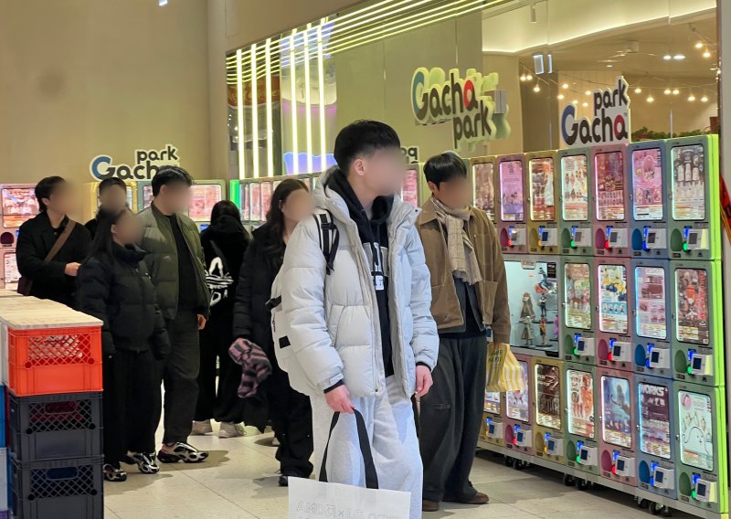 21일 오후 서울 아이파크몰 용산점. 평일 점심시간을 넘긴 시간이지만 매장 내부는 친구·연인 단위로 방문한 1030세대들로 북적였다. 광명에서 찾아왔다는 김모씨(35)와 임모씨(34)는 "아직 차가 없어서 덥거나 추울 때에는 접근성이 좋은 아이파크몰로 자주 데이트를 온다"고 말했다. 이어 "라부부(캐릭터)가 유행할 당시 팝마트(라부부 유통사)가 팝업이 있다고 해서 처음 와봤는데, 가챠 등 그때그때 유행하는 콘텐츠를 만나볼 수 있어 좋은 것 같다"고 했다.