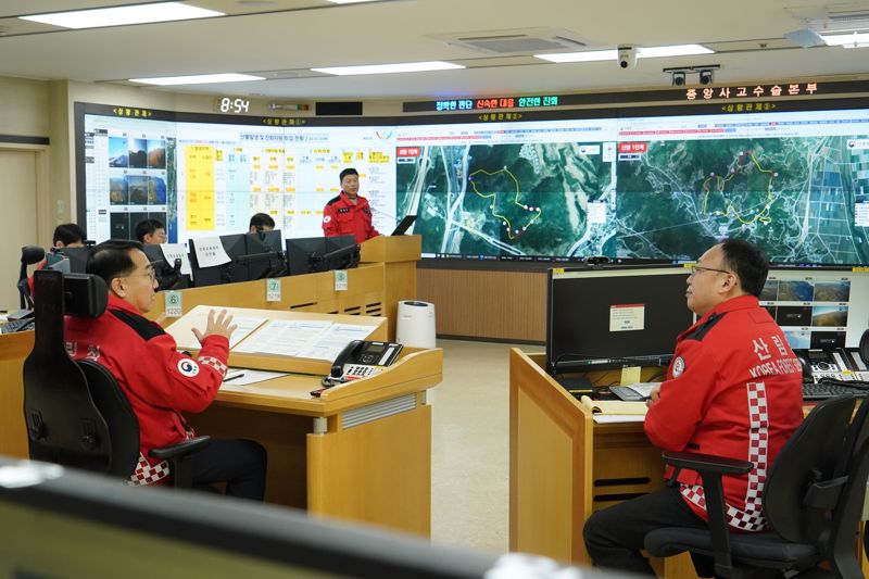 김 청장은 “강한 바람으로 산불이 확산되는 상황에서 선제적으로 진화자원을 투입하고 밤샘 진화작업을 실시해 산불 확산세를 차단할 수 있었다”면서 “산불진화 헬기 등 가용가능한 자원을 총동원해 조기에 산불이 진화될 수 있도록 진화작업에 총력을 기울여달라”고 말했다. 이어 “강한 추위 속에서 진화에 참여하는 모든 진화대원들의 안전에도 각별히 유의해달라”고 당부했다. 산림청 제공