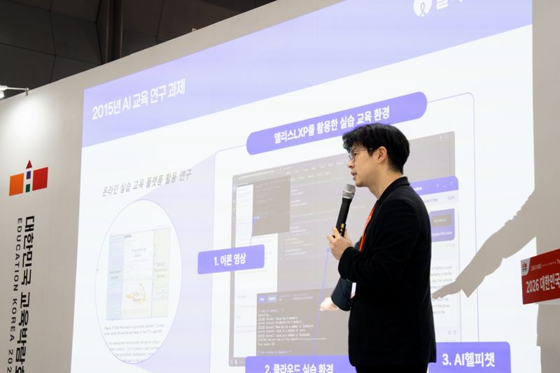박람회 첫날인 21일에는 엘리스가 참여한 교사 대상 세미나 ‘티처스 아카데미(Teacher’s Academy)’가 열렸다. 엘리스그룹 김재원 대표와 제주중문중학교 김가영 교사, 서울고등학교 송석리 교사가 연사로 참여해 ‘2026 AI 인재양성정책 교실에서 바로 실행하는 방법’을 주제로 실제 수업 적용 사례와 교육 현장의 변화를 공유했다.