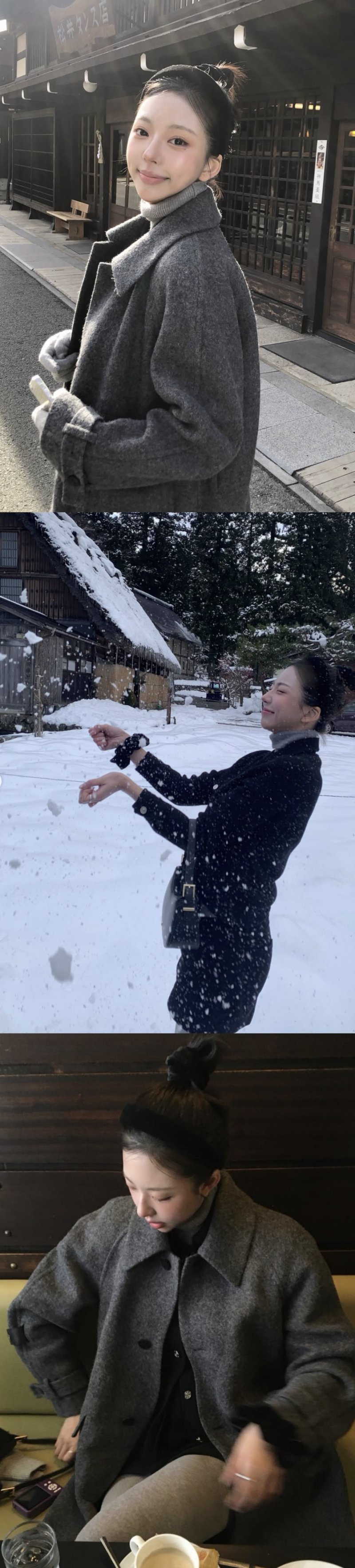 깔끔하게 올린 헤어스타일과 포근한 그레이 코트가 조화를 이루며 특유의 단정하고 맑은 분위기를 더했다.