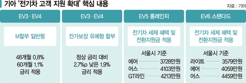 기아는 전기차 구매 시점의 초기 부담을 낮추기 위해 0%대 초저금리 할부와 잔존가치보장 유예형 할부를 대폭 강화한다.