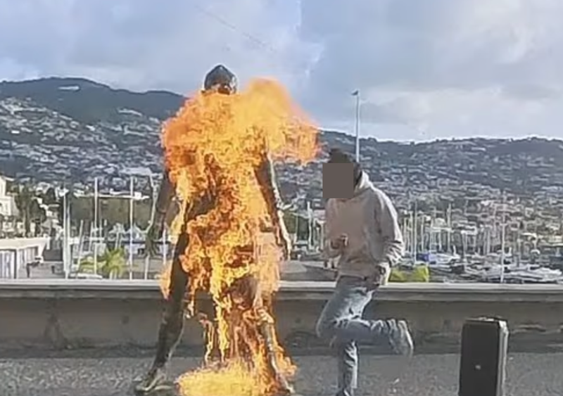 이 남성은 호날두 동상에 인화성 액체를 붓고 불을 붙인 뒤 춤을 추는 장면을 직접 촬영해 사회관계망서비스(SNS)에 올렸다.
