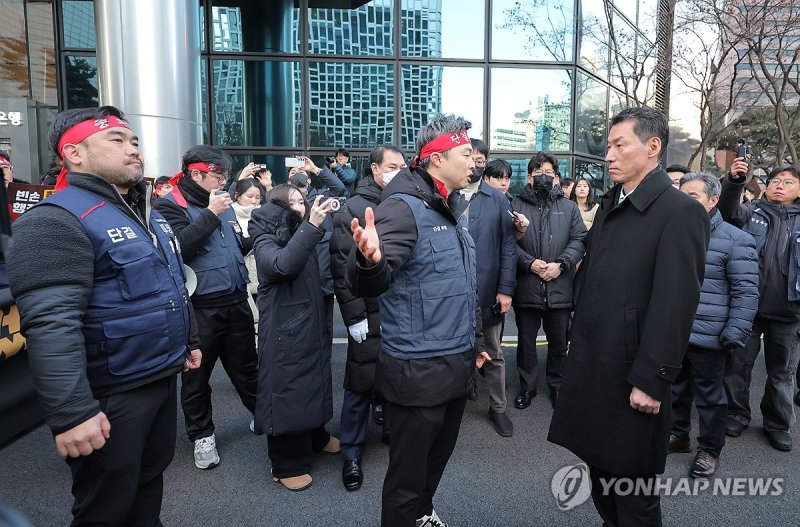 노조원들은 장 행장에게 "(체불임금 지급 문제 해결 등과 관련해) 대통령의 약속을 받아오라"고 소리쳤다.