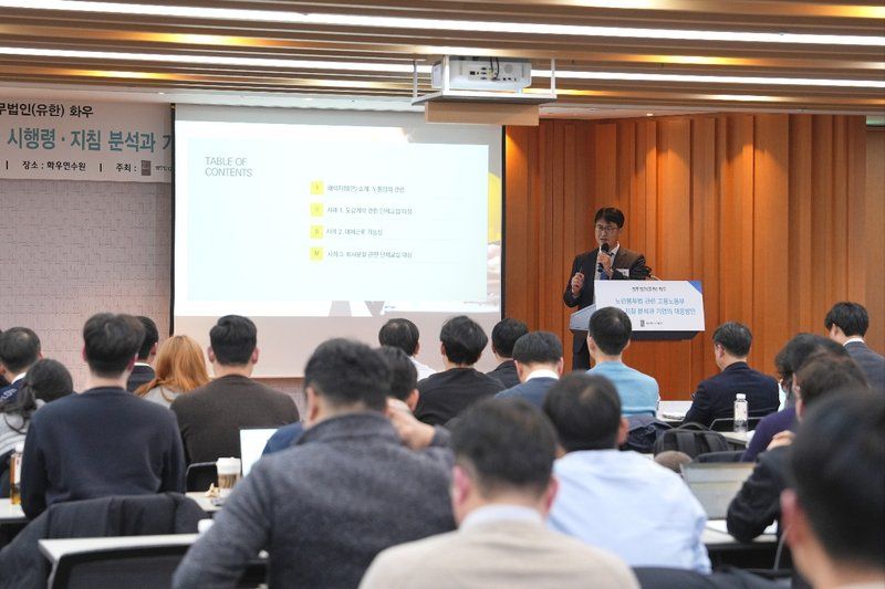 세미나를 기획한 박찬근 노동그룹장(연수원 33기)은 "노란봉투법 시행을 앞두고 노사 현장에서 예상되는 혼란을 줄이고 체계적인 대응 전략 마련에 도움이 되길 바란다"고 말했다. 이어 "화우는 앞으로도 기업 고객의 입장에서 합리적인 선택과 선제적인 실무 대응 방안을 지속적으로 제시해 나가겠다"고 밝혔다.