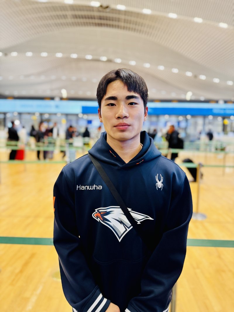 (인천공항=뉴스1) 서장원 기자 = 프로야구 한화 이글스 외야수 오재원(19)은 내야수 최유빈(23)과 함께 올해 스프링캠프에 합류한 '유이한' 신인 선수다.