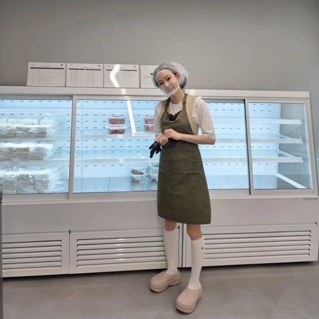 공개된 사진 속 지연수는 위생모와 앞치마를 착용한 채 반찬가게 앞에서 포즈를 취하는 등 아르바이트 현장을 공개했다.