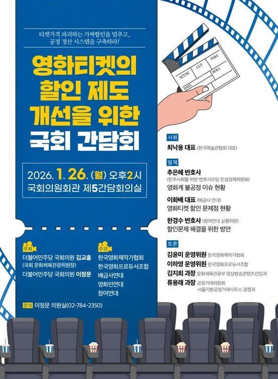 한국영화제작가협회는 24일 이같이 밝혔다. 행사는 국회 문화체육관광위원회 위원장인 김교흥 더불어민주당 의원과 같은 당의 국회 정무위원회 소속 이정문 의원이 주최한다.