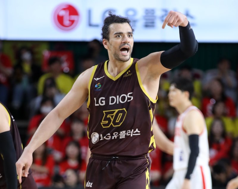 1쿼터를 2점 차로 앞선 LG는 2쿼터 들어 멀리 달아났다. 강력한 수비를 바탕으로 정관장의 득점을 꽁꽁 묶었고, 쿼터 막판 정인덕과 마레이 등이 연속 9득점을 해 36-22로 앞섰다.