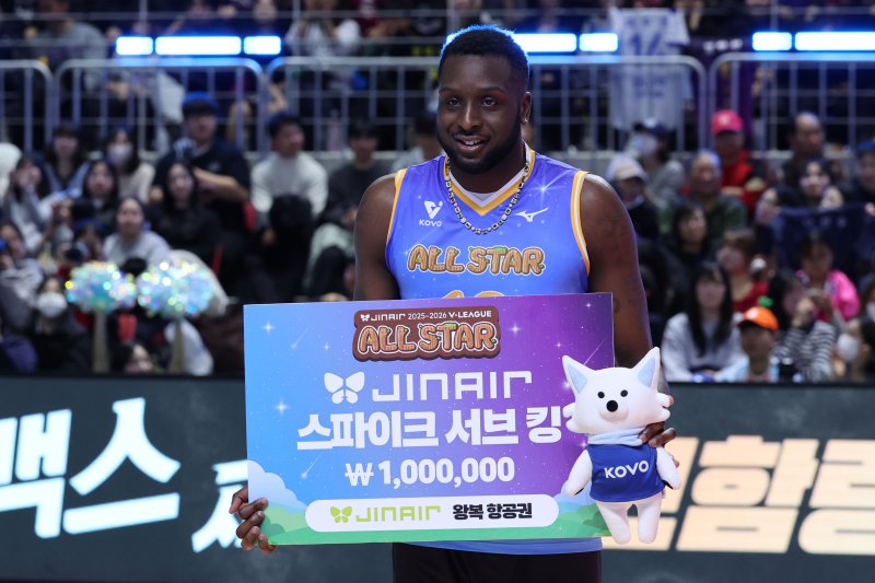 베논은 25일 강원도 춘천 호반체육관에서 열린 진에어 2025~2026 V-리그 올스타전 서브킹 콘테스트에서 1위를 차지했다.