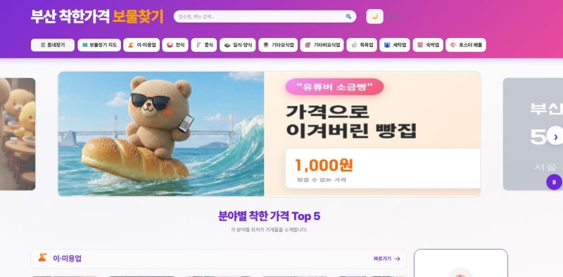 이 웹사이트는 시가 지정·운영 중인 착한가격업소 정보를 시민 눈높이에 맞게 한눈에 확인할 수 있도록 구현한 웹 기반 플랫폼이다.