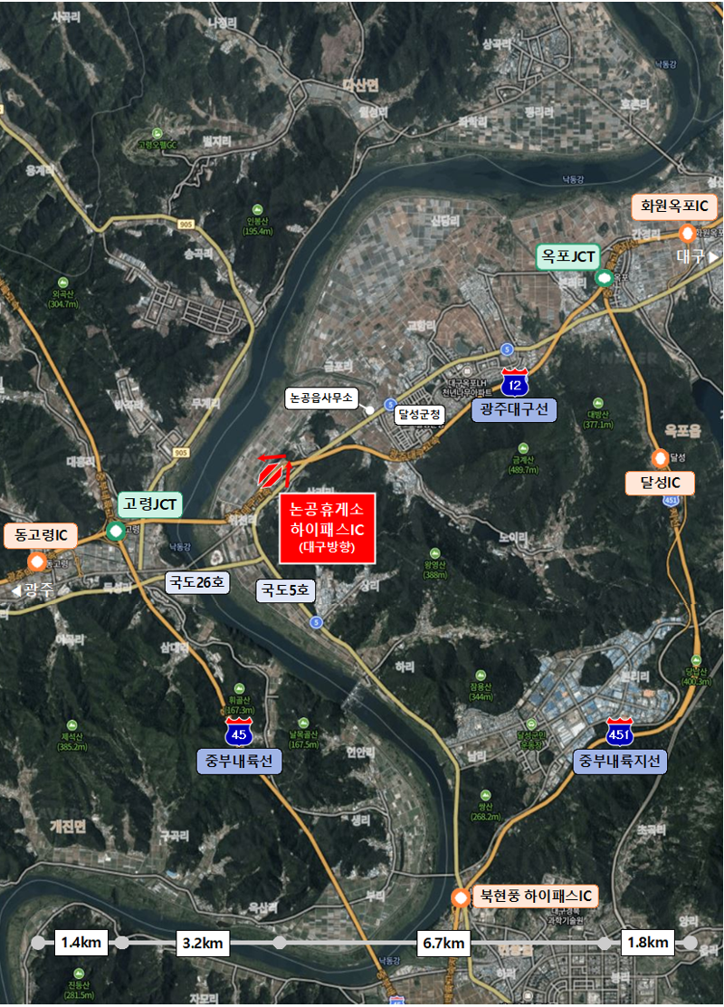 신설되는 하이패스IC는 달성군 논공읍에 위치한 논공휴게소에 설치되며, 일반국도 5호선과 연결된다. 실시설계 1년과 건설공사 2년을 거쳐 2029년 개통될 예정이다.