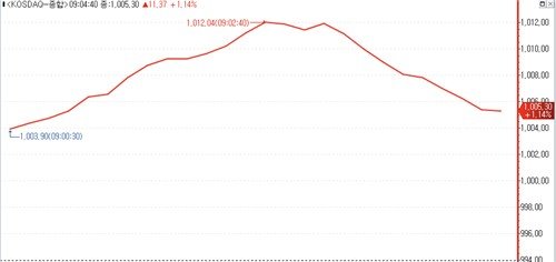 [코스닥] 9.97p(1.00%) 오른 1,003.90(개장)