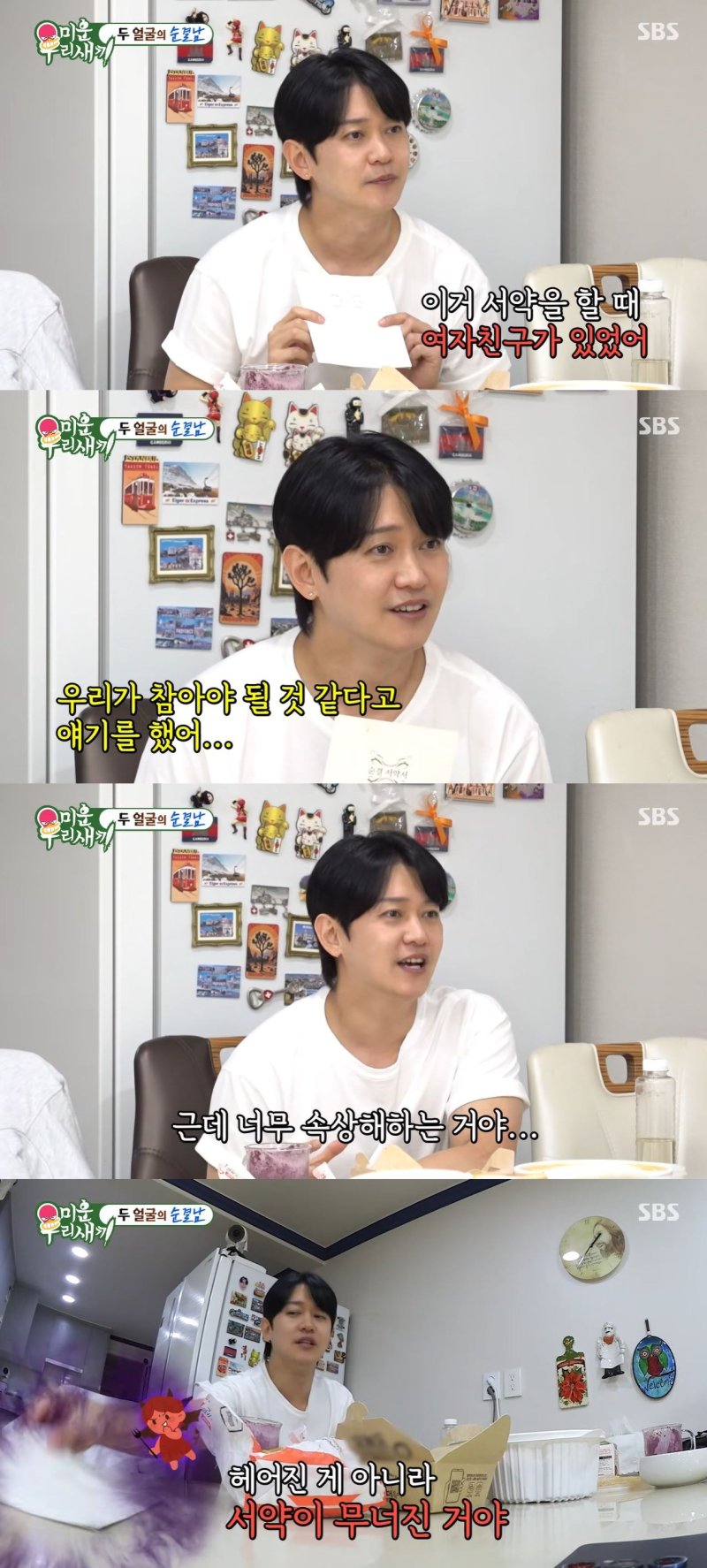 김희철이 "헤어진 거냐"고 하자 강균성은 "헤어진 게 아니라 서약이 무너졌다"고 말했다.
