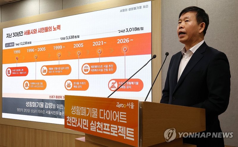 서울시는 26일 시청에서 브리핑을 열어 이달부터 시민 1명당 연간 종량제봉투 1개 분량의 쓰레기를 줄이는 '생활폐기물 다이어트 천만 시민 실천 프로젝트'를 추진한다고 밝혔다.