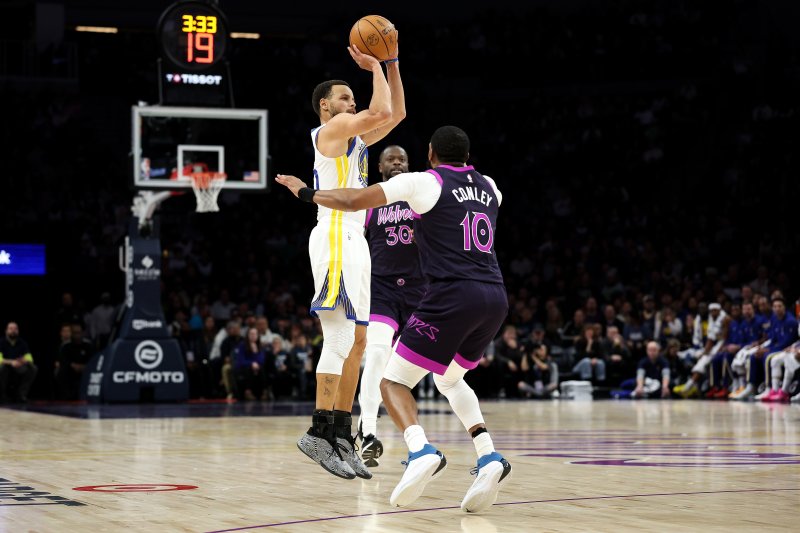 [서울=뉴시스] 김진엽 기자 = 미국프로농구(NBA) 골든스테이트 워리어스가 스테픈 커리의 활약에 힘입어 미네소타 팀버울브스를 상대로 큰 점수 차의 승리를 거뒀다.