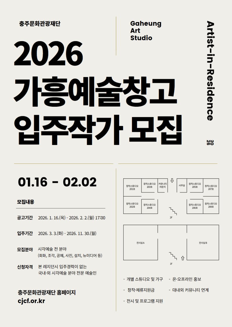 모집 인원은 6명으로 입주 기간은 3월부터 11월까지 9개월간이다. 레지던시 입주경력이 없는 작가라면 누구나 지원할 수 있다.
