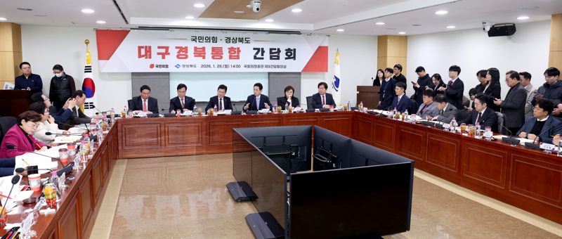 【파이낸셜뉴스 안동=김장욱 기자】경북도와 국민의힘 경북지역 국회의원들은 26일 국회의원회관에서 대구경북 행정통합 간담회를 열고 지역 국회의원의 다양한 의견을 수렴하고 국회와의 협력방안을 논의했다고 밝혔다.