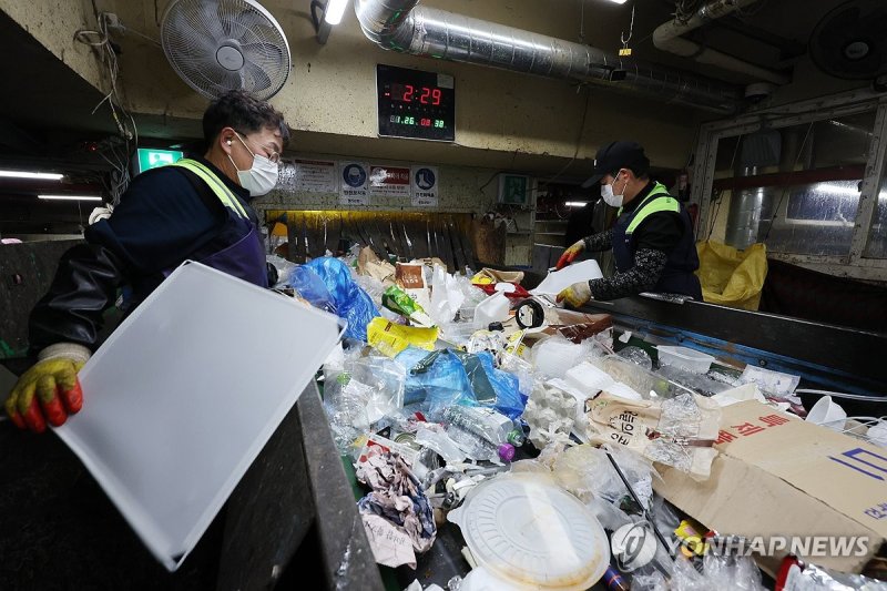 (서울=연합뉴스) 황재하 기자 = "하루 100t 정도, 월별로 보면 2천600t 정도 재활용 폐기물이 들어옵니다. 이 중에 75%가량은 선별해서 재활용하고, 선별되지 않는 나머지는 재활용업체에 보내서 고형 연료로 제작합니다."(에코트리 관계자)