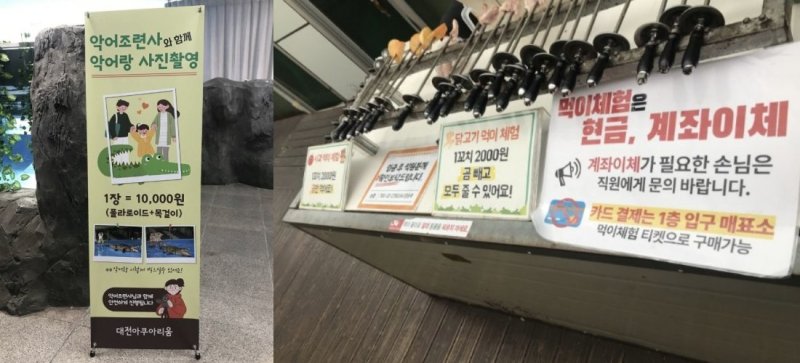 대전충남녹색연합은 "여전히 사자, 벵갈호랑이, 반달가슴곰 등 실내동물원 보유 종에게 먹이 체험을 진행하고 평일 3회·주말 및 공휴일 4회씩 진행하는 악어쇼에서 관람객과 사진 찍는 이벤트도 열고 있다"며 "조련사가 막대기로 끊임없이 악어의 얼굴을 치거나 물을 뿌리며 억지로 입을 열게 하여 손을 넣거나 얼굴을 넣고, 꼬리를 끌어 이동 동선을 조정하는 등 관람객의 유흥을 위한 오락적인 행위를 버젓이 하고 있다"고 지적했다.