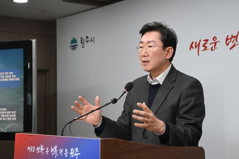 원강수 원주시장은 26일 기자회견을 열고 정부의 광역 행정 통합 기조에 맞춰 원주·횡성 통합 논의를 시작하자고 건의했다.