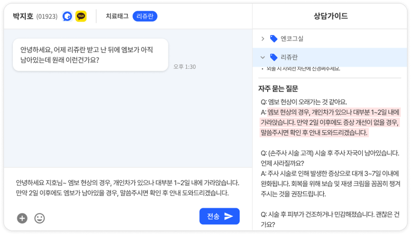 병의원은 애프터닥을 통해 환자별 치료 주기와 특성에 맞춘 안내 메시지를 발송하고, 주의사항 등 환자에게 필요한 정보를 적시에 제공할 수 있다. 현재 전국 500여곳 이상의 병의원에 도입됐으며, 인천세종병원 등 중대형 의료기관에서도 활용되고 있다.