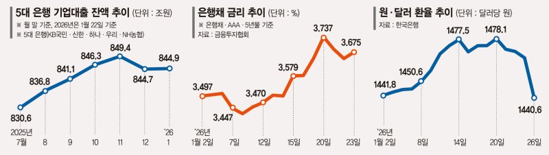 우선 지난해 1300원대에서 등락하던 원·달러 환율이 연말 연초 1400원대 중반으로 올라서면서 외화 차입 시 은행의 이자 부담이 커진 상황이다. 여기에 연초 환율 변동성 확대는 환헤지 비용과 자본관리 불확실성을 키우면서 장기·대규모 자금이 필요한 생산적 금융에 은행들이 적극 나서기 어려운 환경을 만들고 있다.