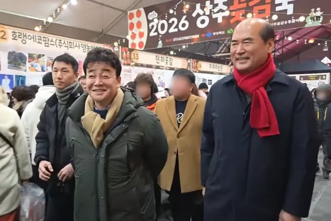 지난 25일 유튜브 채널 ‘트로트공작소’에는 ‘백종원 상주시장님 동반 상주곶감축제 깜짝 등장 20260124’라는 제목의 영상이 올라왔다.