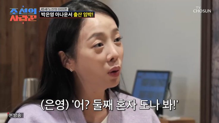 26일 오후 방송된 TV조선 예능 프로그램 '조선의 사랑꾼'에서는 올해 나이 45세 박은영 아나운서가 출산이 임박한 근황을 공개했다.