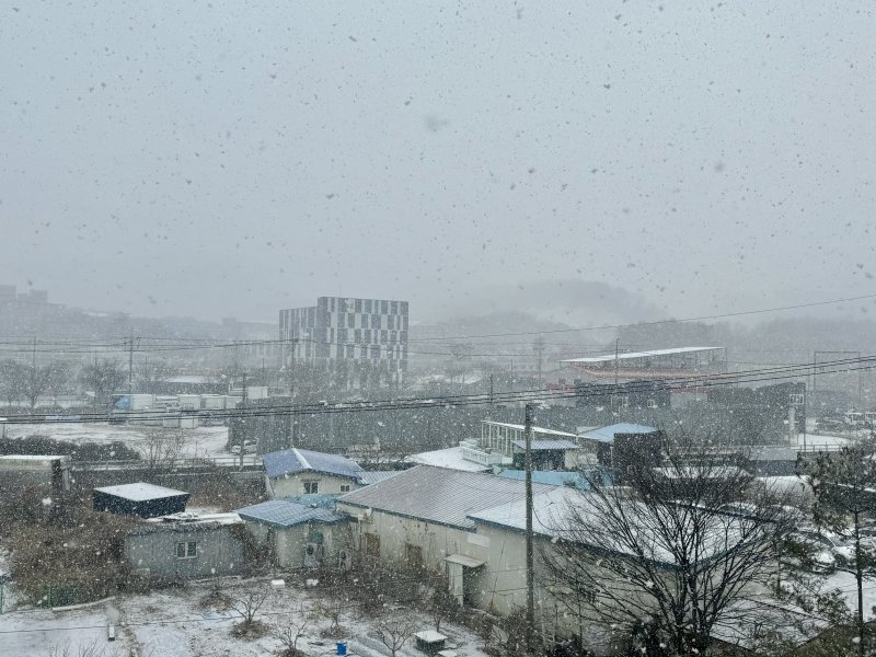 (광주=뉴스1) 서충섭 기자 = 27일 광주와 전남은 강풍을 동반한 가운데 눈이 내린다.